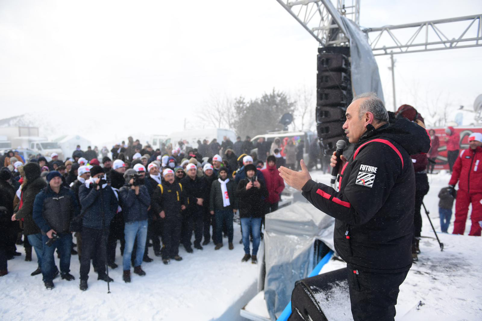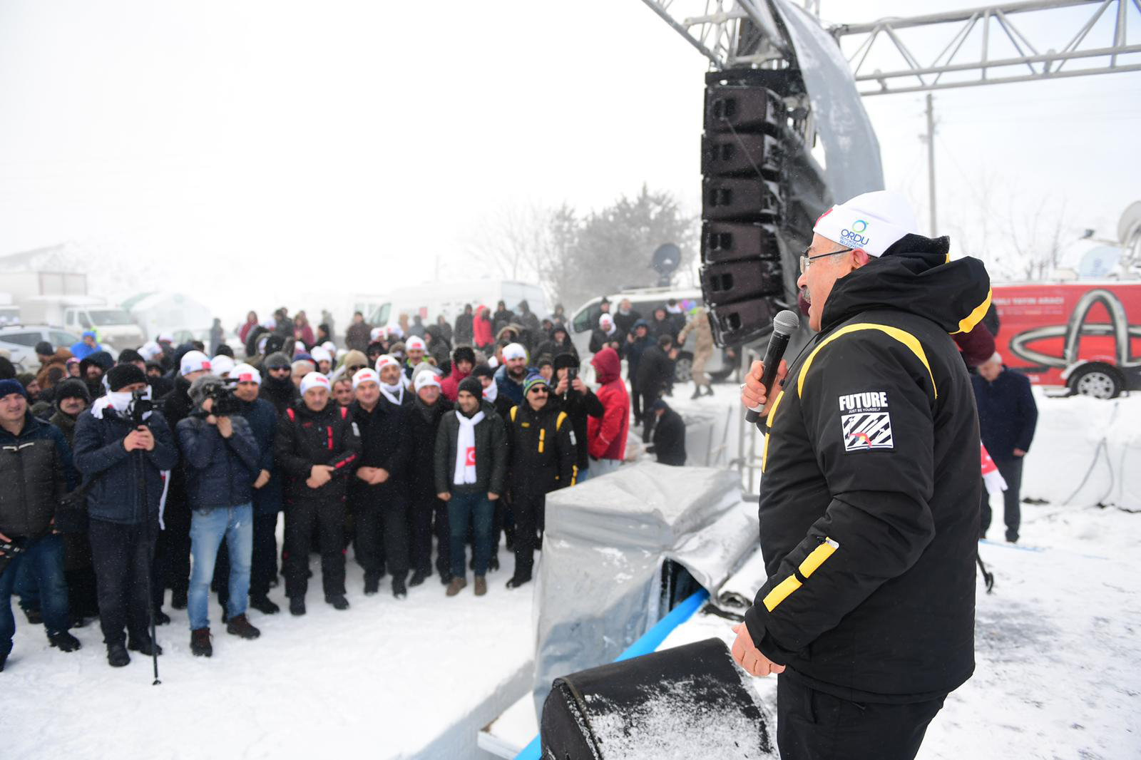 Programın açılış konuşmasını yapan Kabadüz Belediye Başkanı Yener Kaya, kar festivalinin olmazsa olmazlarından birinin de soğuk hava şartlarının olduğuna dikkat çekti. Başkan Kaya, “Bu festivalin adı kar festivali. Kötü hava şartlarını her festivalde yaşayacağız. Bugün biraz daha fırtınalı bir havayla bu etkinlikte bulunuyoruz. Eğer bu kar olmazsa, kayak merkezi de olmaz, bu kar olmazsa su da olmaz. Burada yapılan etkinliğin hepimiz için hayırlı ve eğlenceli olmasını diliyorum.” dedi.