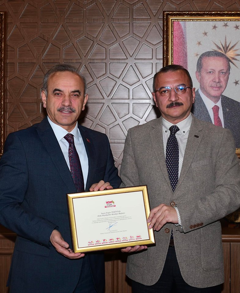 Ordu Büyükşehir Belediye Başkanı Engin Tekintaş, Ordu 19 Eylül Gazeteciler Cemiyeti Başkanı Erdoğan Erişen ve yönetim kurulu üyelerini makamında ağırladı. Ziyaret kapsamında Türkiye Gazeteciler Konfederasyonu 17. Başkanlar Kurulu Toplantısı’na sunduğu katkılar için Başkan Tekintaş’a teşekkür plaketi takdim edildi.