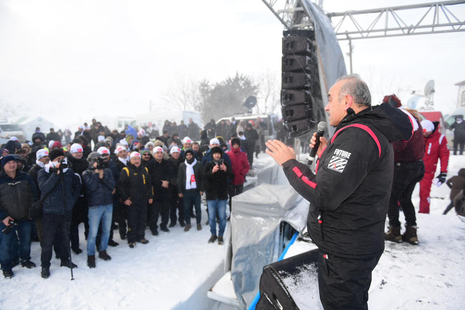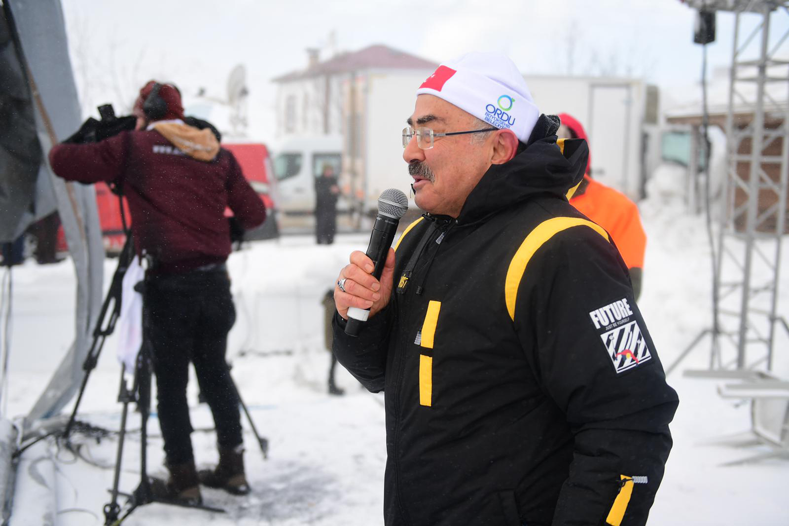 Programın açılış konuşmasını yapan Kabadüz Belediye Başkanı Yener Kaya, kar festivalinin olmazsa olmazlarından birinin de soğuk hava şartlarının olduğuna dikkat çekti. Başkan Kaya, “Bu festivalin adı kar festivali. Kötü hava şartlarını her festivalde yaşayacağız. Bugün biraz daha fırtınalı bir havayla bu etkinlikte bulunuyoruz. Eğer bu kar olmazsa, kayak merkezi de olmaz, bu kar olmazsa su da olmaz. Burada yapılan etkinliğin hepimiz için hayırlı ve eğlenceli olmasını diliyorum.” dedi.