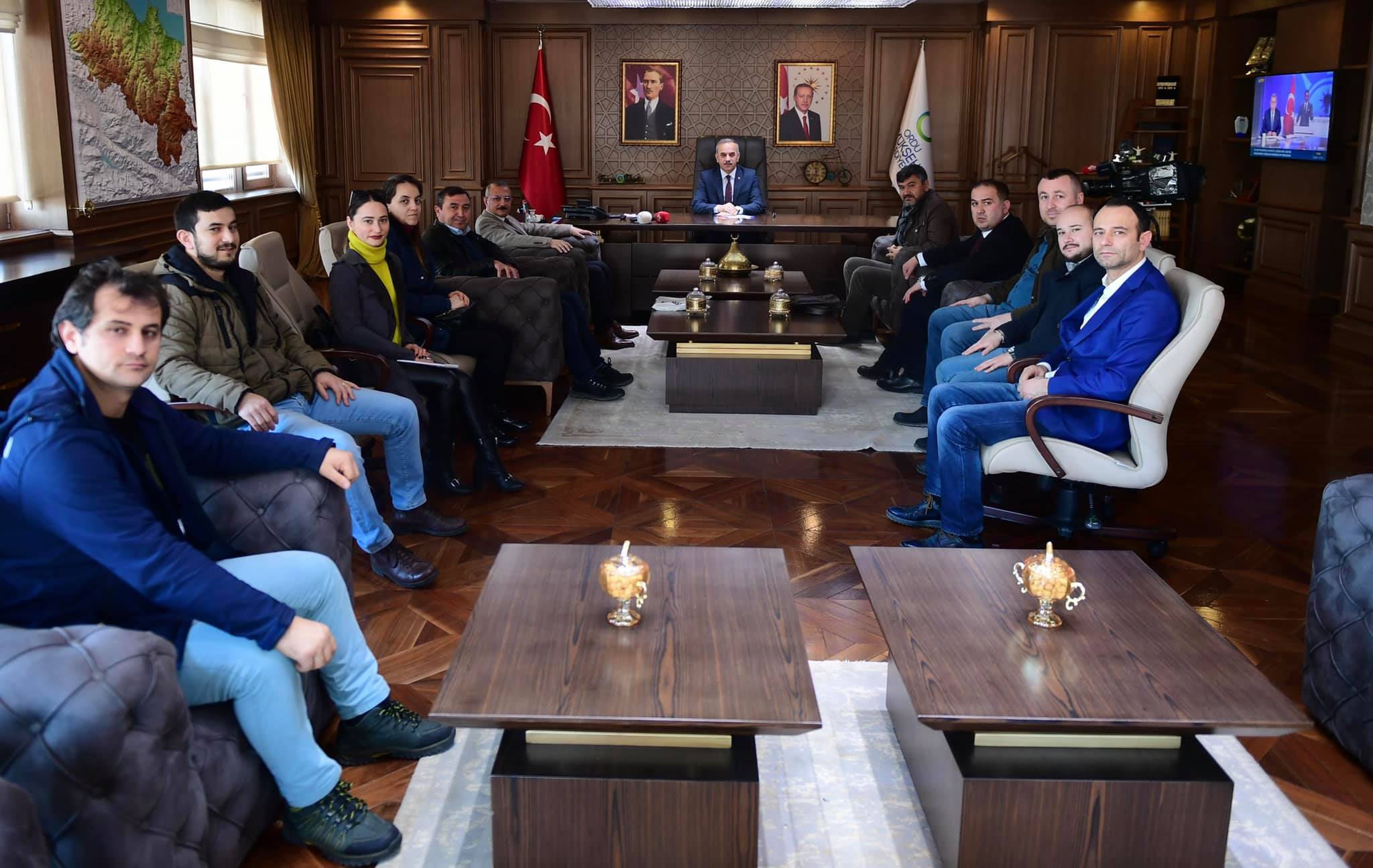 Ordu Büyükşehir Belediye Başkanı Engin Tekintaş, Ordu 19 Eylül Gazeteciler Cemiyeti Başkanı Erdoğan Erişen ve yönetim kurulu üyelerini makamında ağırladı. Ziyaret kapsamında Türkiye Gazeteciler Konfederasyonu 17. Başkanlar Kurulu Toplantısı’na sunduğu katkılar için Başkan Tekintaş’a teşekkür plaketi takdim edildi.